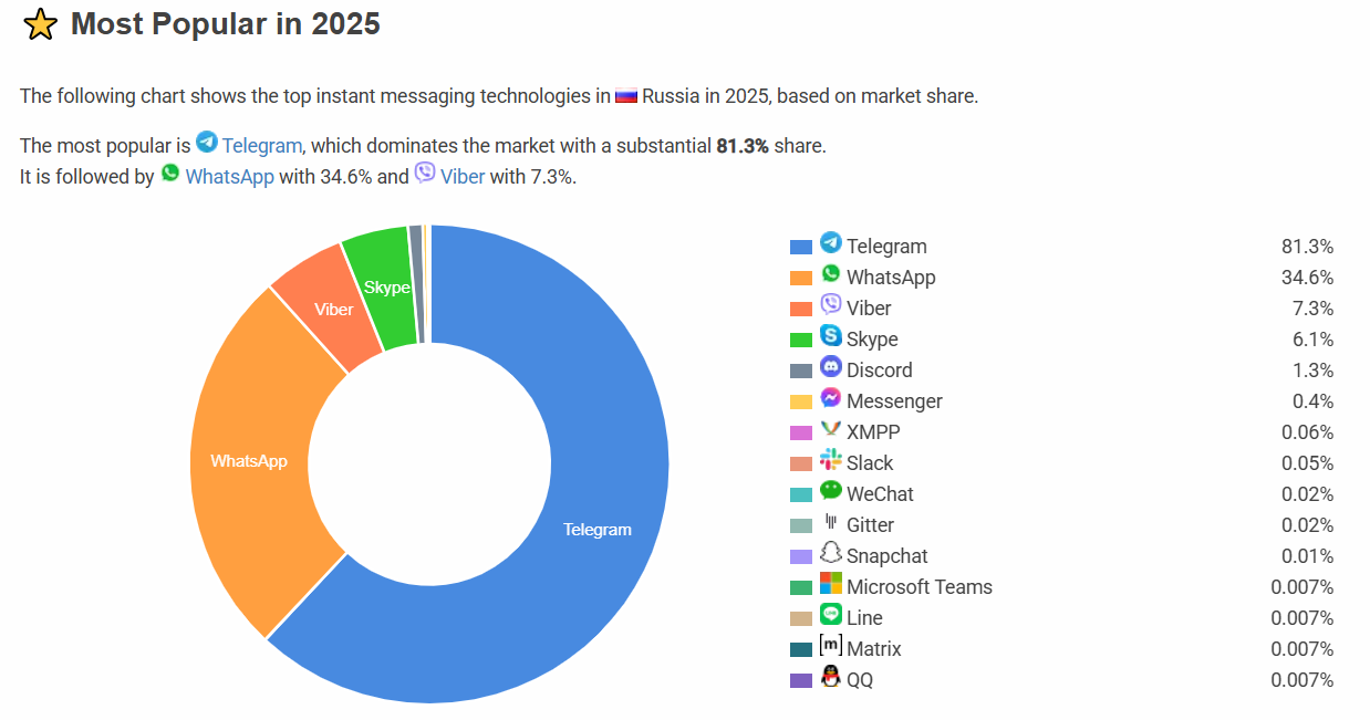 在 2025 年 6 月,普京簽署了一項(xiàng)立法,授權(quán)創(chuàng)建一個(gè)國(guó)家運(yùn)營(yíng)的通訊平臺(tái)。該應(yīng)用程序正在開(kāi)發(fā)中,作為對(duì)外國(guó)通訊應(yīng)用(如 WhatsApp、Telegram、Signal)的安全替代方案,預(yù)計(jì)將直接與俄羅斯的主要數(shù)字政府門(mén)戶(hù) Gosuslugi 集成。